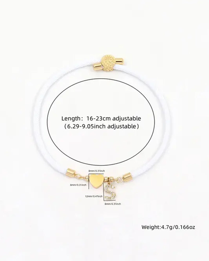 【Retro Heart Charm】: Featuring a unique retro-inspired heart charm, this bracelet offers a touch of timeless romance to any outfit.【Adjustable Rope】: The bracelet's adjustable rope design ensures a perfect snug or loose fit, catering to different wrist sizes for enhanced comfort.【Copper & Stainless Steel】: Crafted from durable copper and stainless steel, the bracelet balances beauty with longevity for daily wear.【Letter Pendant】: Personalize your jewelry collection with the classic letter pendant, making it an ideal gift for yourself or a loved one.【Rope Chain Detail】: The intricately designed rope chain adds a layer of sophistication, distinguishing it from other simple link bracelets.